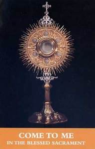 Heavenly Father, increase our faith in the Real Presence of Your Son Jesus Christ in the Holy Eucharist. We are obligated to adore Him, to give Him thanks and to make reparation for sins. We need Your peace in our hearts and among nations. We need conversion from our sins and the mercy of Your forgiveness. May we obtain this through prayer and our union with the Eucharistic Lord. Please send down the Holy Spirit upon all peoples to give them love, courage, strength and willingness to respond to the invitation to Perpetual Eucharistic Adoration. We beseech You to spread perpetual exposition of the Most Blessed Sacrament in parishes around the world. We ask this in the name of Jesus the Lord. Amen. Our Lady of the Most Blessed Sacrament help us spread the glory of Your son through perpetual exposition of the Holy Eucharist. For materials & help in starting Perpetual Eucharisitic Adoration contact us at: Missionaries of the Blessed Sacrament PO Box 1701, Plattsburgh, NY 12901 Ph: (518 )561-8193 Fax: (518) 566-7103 You may purchase this prayer card from our catalog here (D-11) (Listed under Bookmarks, Cards and Stickers in the catalog section of our website) |
